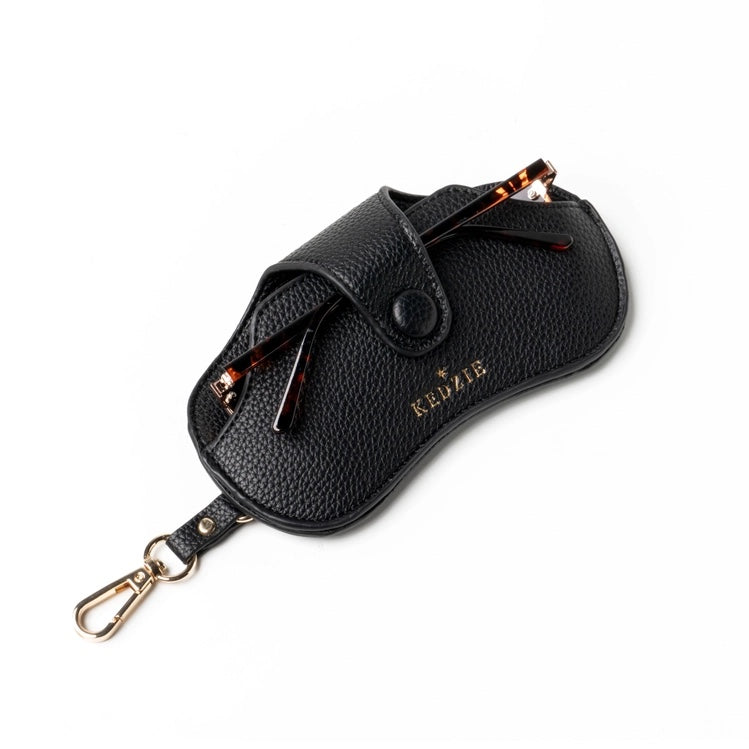 Conveniently accessible storage for glasses, sunnies & blue light blockers! These buttery soft vegan leather cases are perfect for travel, office and everyday. Customers can clip to the outside or inside of any bag to safely store eyewear on the go.