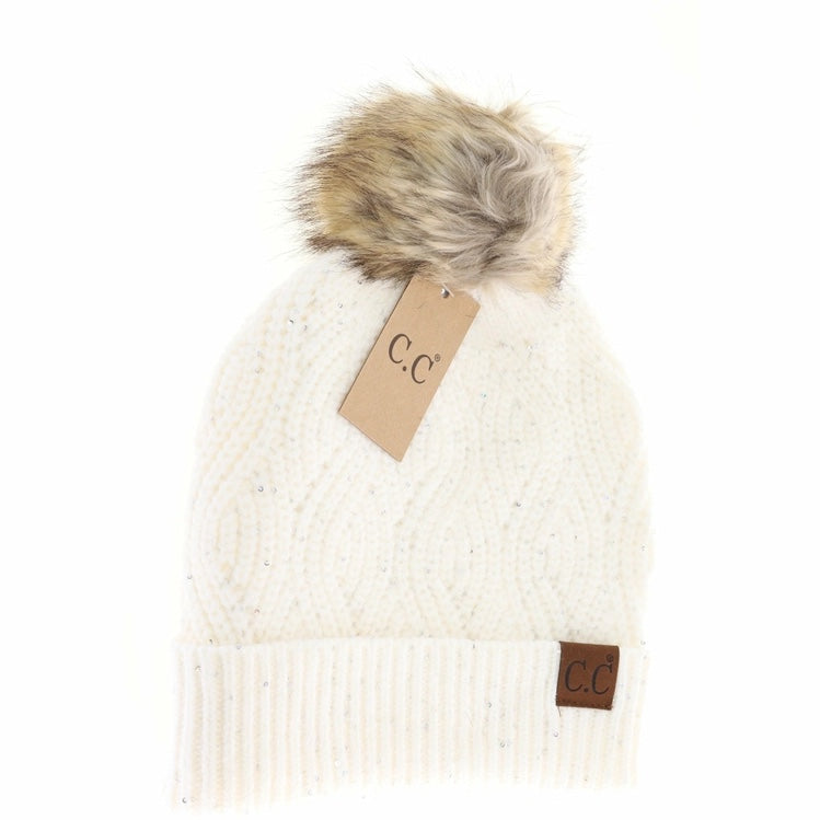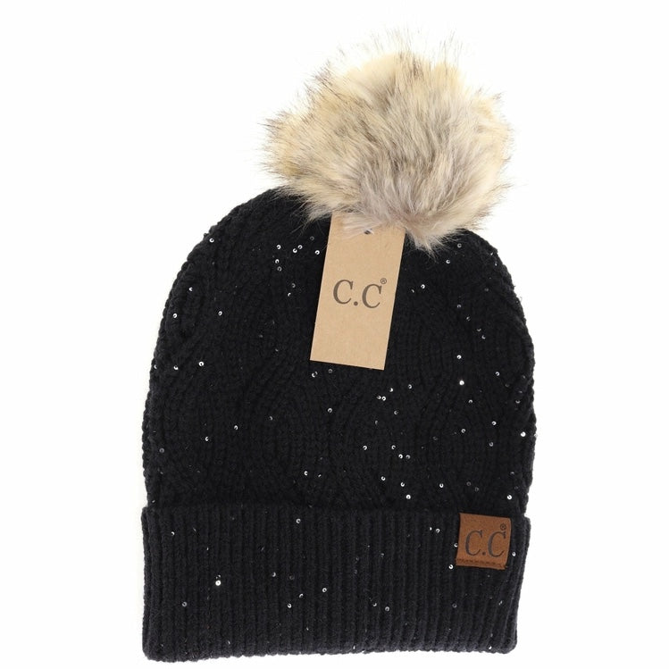 Sequin Brioche Pom Beanie