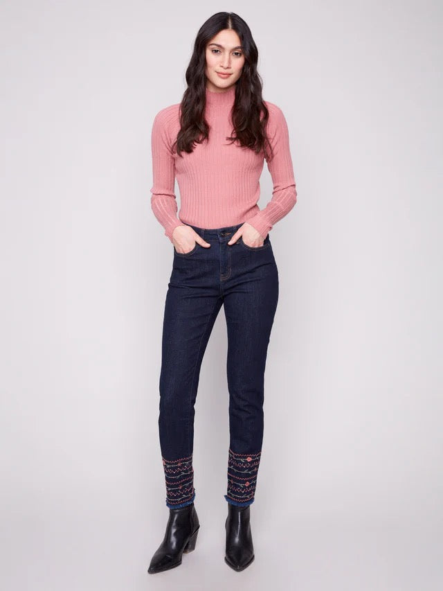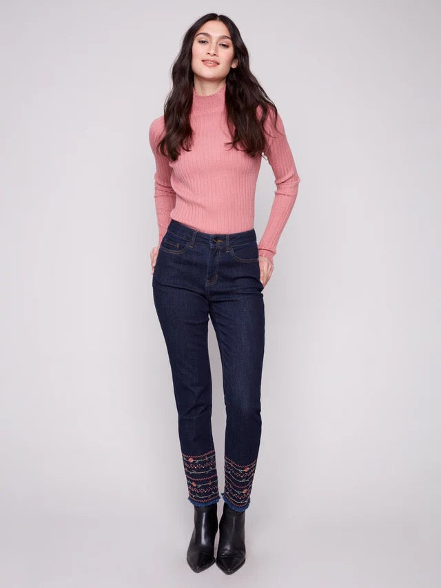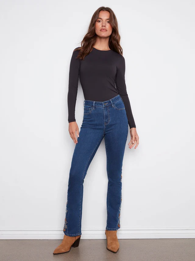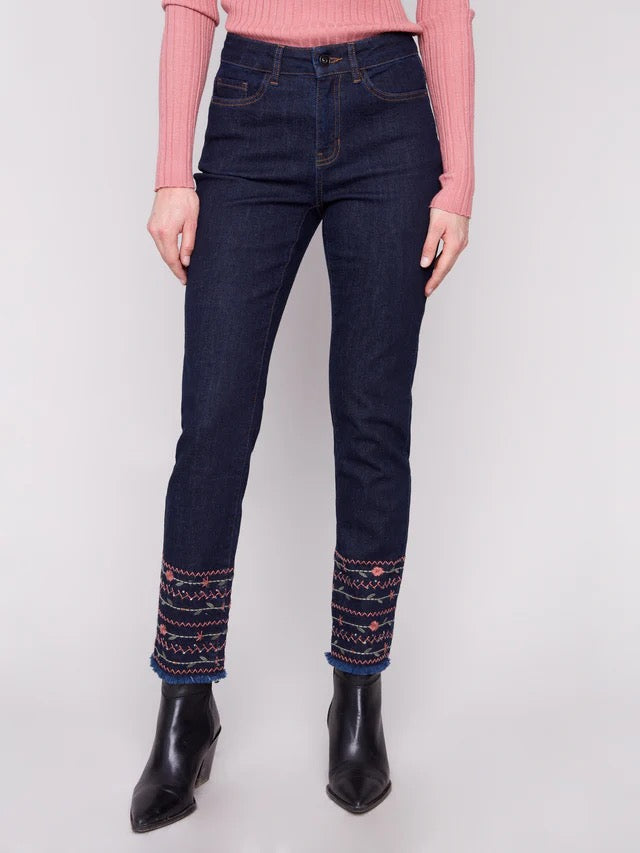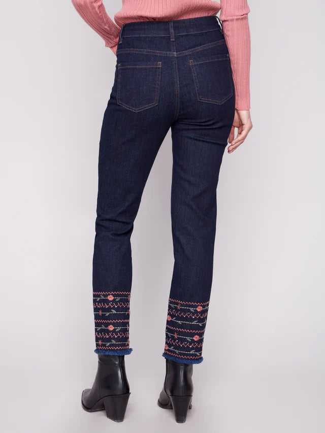 Embroidered Hem Jeans