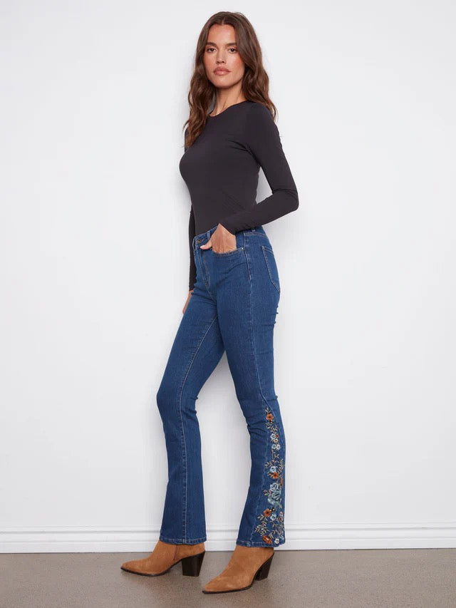 Floral Embroidery Bootcut Jean