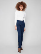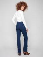 Bootcut Leg Stretch Denim Pants With Gem Buttons At Hem Slit