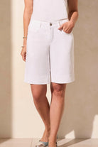Refresh your sunshine-ready style with these denim Bermuda shorts, crafted from comfort stretch twill for effortless movement. Functional pockets and belt loops enhance casual practicality, while the traditional button closure ensures a secure fit at the waist.