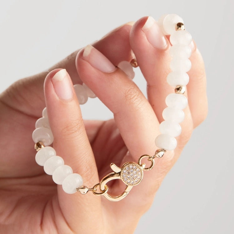 White Jade Caribiner Bracelet