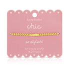 Add a touch of style to your shop with the Chic Love Language Bracelet. Featuring 14k gold-dipped, nickel-free beads spelling out "Chic" (stylish), it’s the perfect accessory.