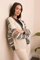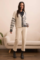 Add a playful element to your classic cardigan with this cozy layer featuring a vibrant multi-stitch design. The buttoned front offers versatile styling, wear it open for a relaxed feel or closed for added warmth. Crafted from a soft, stretch-blend yarn, it layers effortlessly over your favorite essentials.