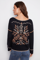 Notch Neck Embroidered Sweater