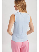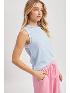 A lightweight knit with a raw-edge finish, this Raw Edge Knit Tank Top offers effortless layering and everyday ease. The sleeveless silhouette and slightly high neckline create a clean, modern shape that pairs well with casual joggers or denim. This style features fine ribbed knit for a soft, lived-in feel.