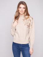 Long Sleeves Mock Neck Sweater With Sequins Detail