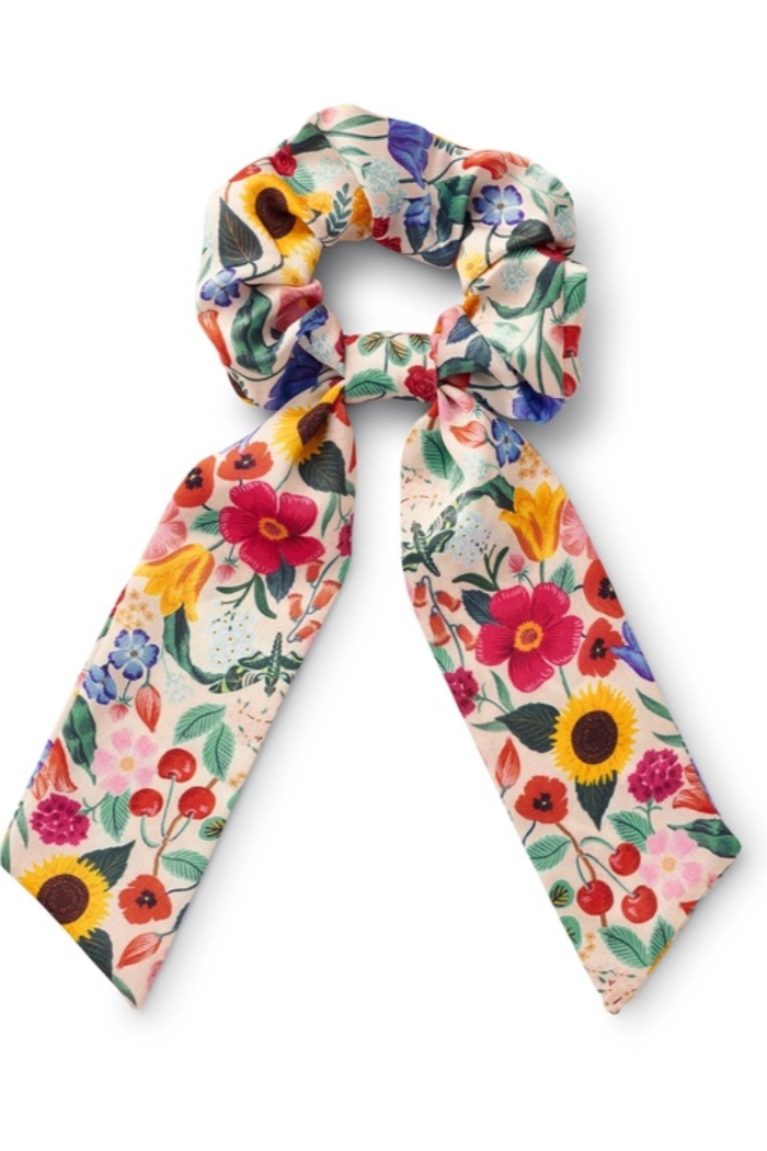 Perk up a ponytail or adorn your wrist. Our scrunchie is made from a silky material with an extra-long scarf tie.