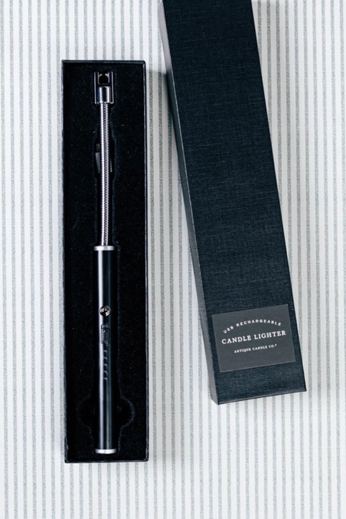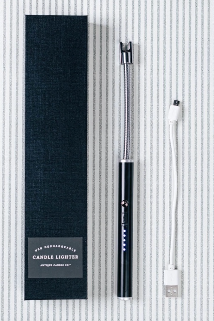 Our Rechargeable Electric Lighter brings your candle game to the next level! The lighter creates an electric arc at the push of a button that easily lights any candle wick with a flip of a switch, and recharges via micro-USB (included in a gift-worthy box!).