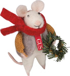 A charming felted mouse holding a tiny wreath and dressed in a knit-style sweater and red scarf, perfect for seasonal display. The Gus Mouse Critter brings whimsical, handcrafted character to mantels, tabletops, or holiday vignettes. Primitives by Kathy designed this little collectible with soft textures and a vintage-inspired palette for cozy, homey appeal. Use it as an ornament-like decorative object or as a gift for anyone who loves folk-style holiday décor.