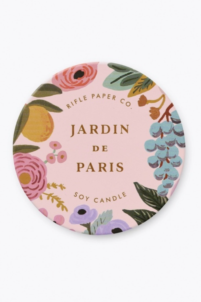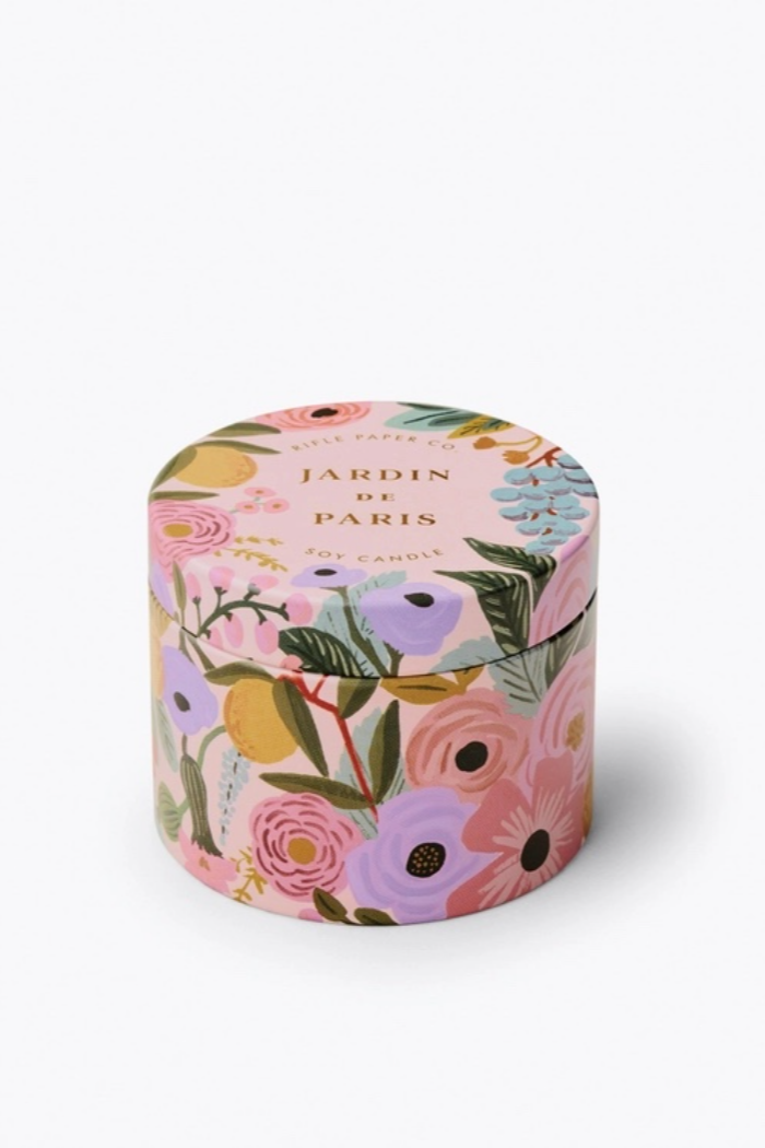 Layered and floral, Jardin de Paris plays homage to blooming French gardens and the iconic elements of Parisian style: classic and feminine. The 3oz soy wax candle comes in an illustrated tin vessel with a matching lid.