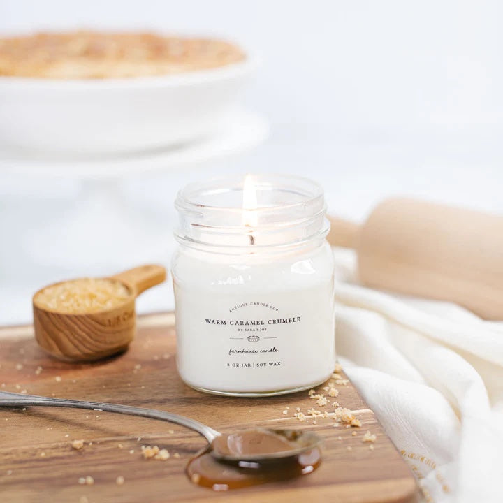 Warm Caramel Crumble by Sarah Joy is a sweet aroma of homemade caramel dessert with warm buttery blends, highlighted with cinnamon-spiced maple, rich vanilla, and baked green apple. The perfect candle for Fall 2024!