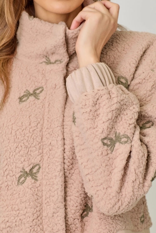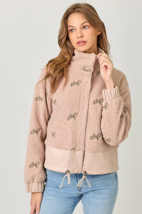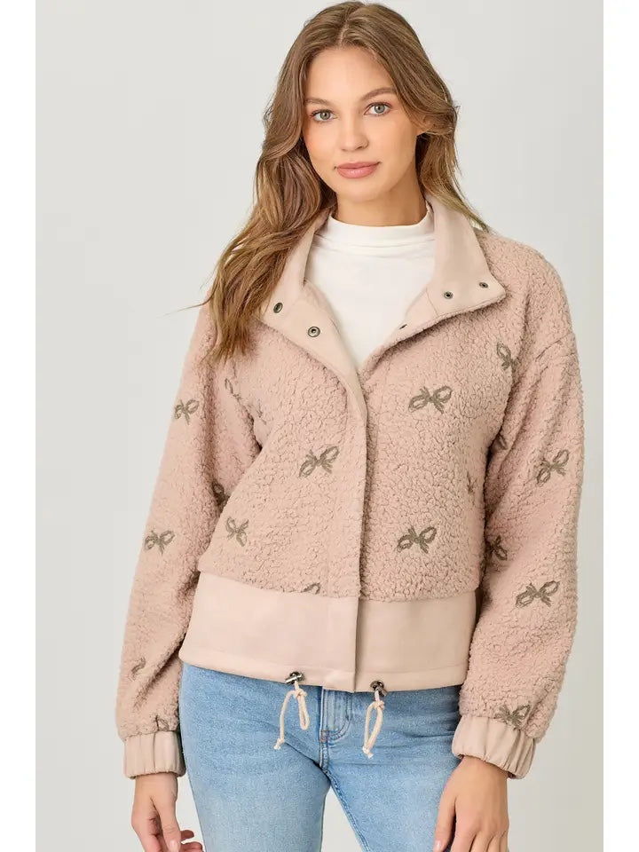 Bow Embroidery Mixed Jacket