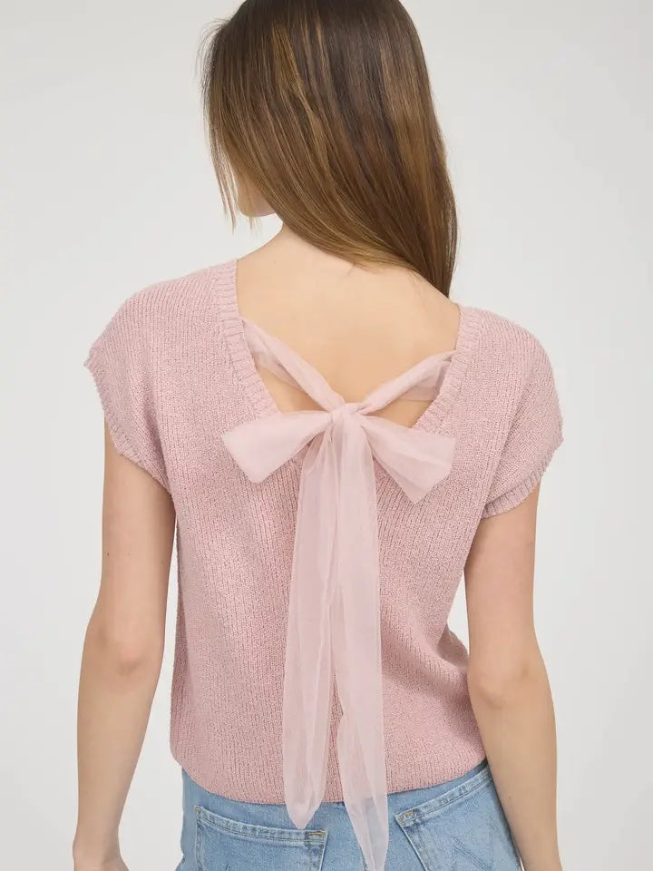 Back Sheer Tie Sweater