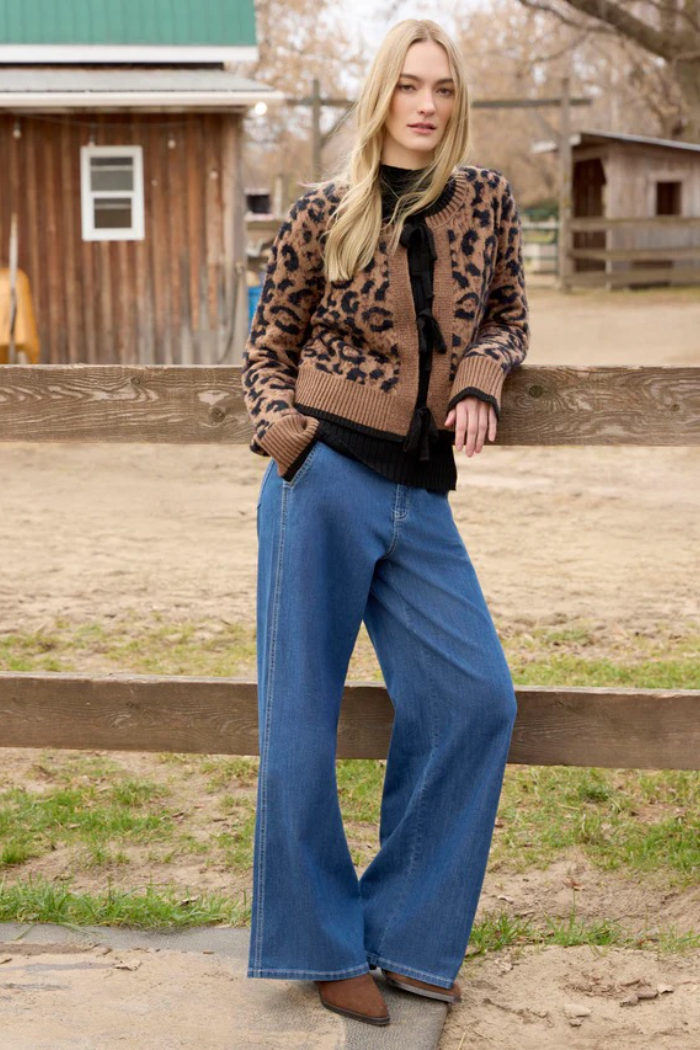 Channel your bold side with our Bow Tie Animal Print Cardigan, where plush comfort meets striking style. The vivid leopard print and playful bow tie closure make an instant statement, ensuring all eyes are on you. Designed for all-day wear, it blends elegance with ease—your must-have standout piece for fall.