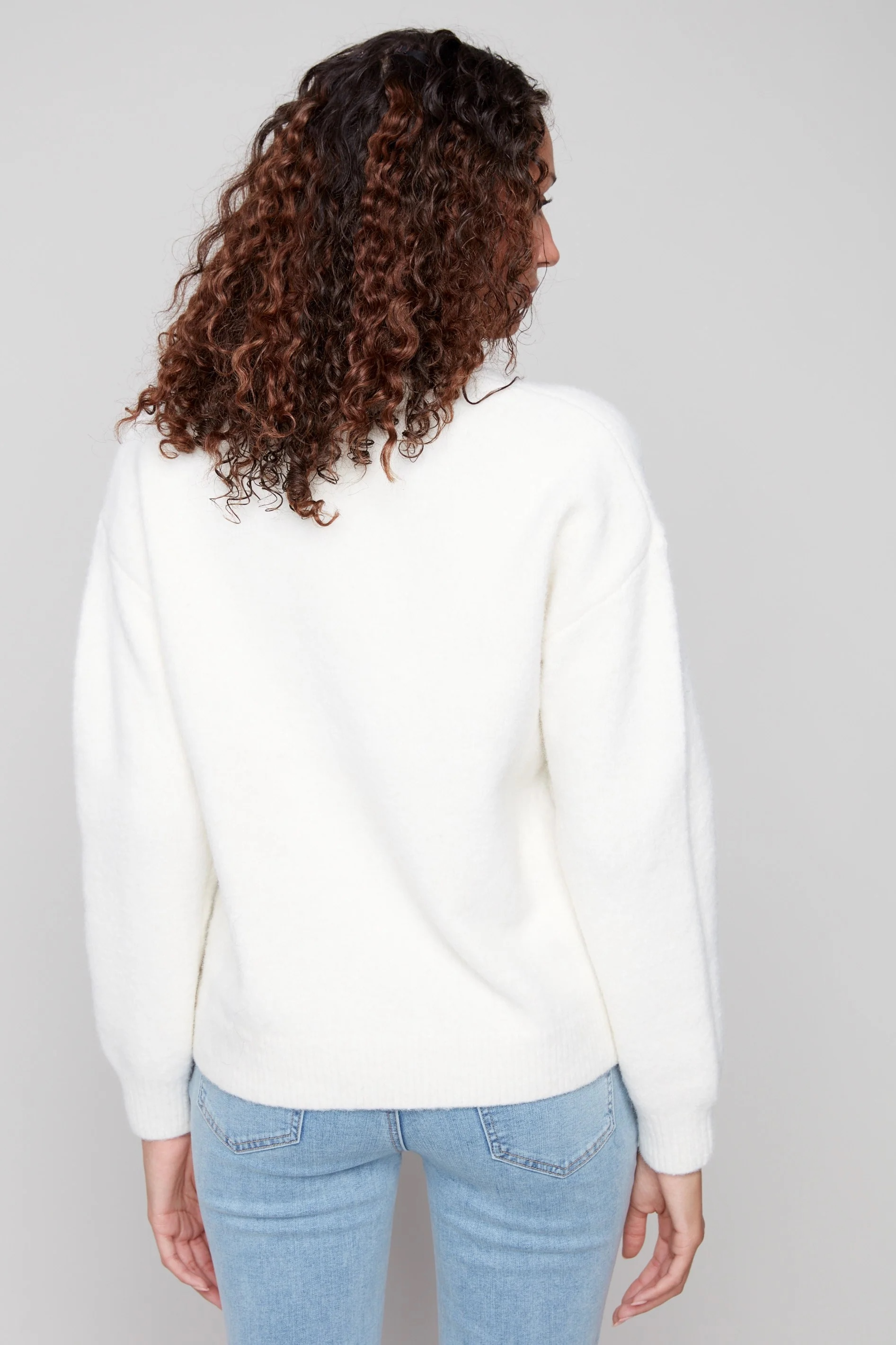 Stay cozy and stylish this fall in this sweater adorned with a red and green cherry print. Its soft, fuzzy texture and relaxed drop shoulder design make it a standout piece for your wardrobe. Perfect for effortless layering, it creates easy, fashionable outfits. Classic crew neckline and ribbed cuffs add timeless details to this unique sweater.