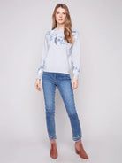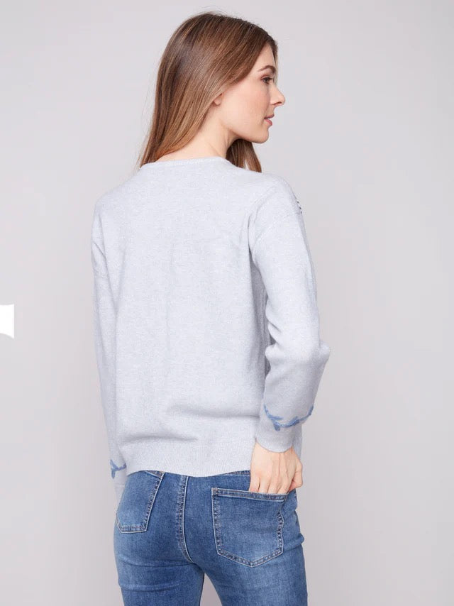 Add a layer of elegance to your fall wardrobe with our heather grey sweater. With delicate embroidery, this sweater is ideal for cooler days. Its drop shoulder design and ribbed cuffs exude sophistication, ensuring a polished look for any occasion. Embrace style and comfort effortlessly with this wardrobe must-have.