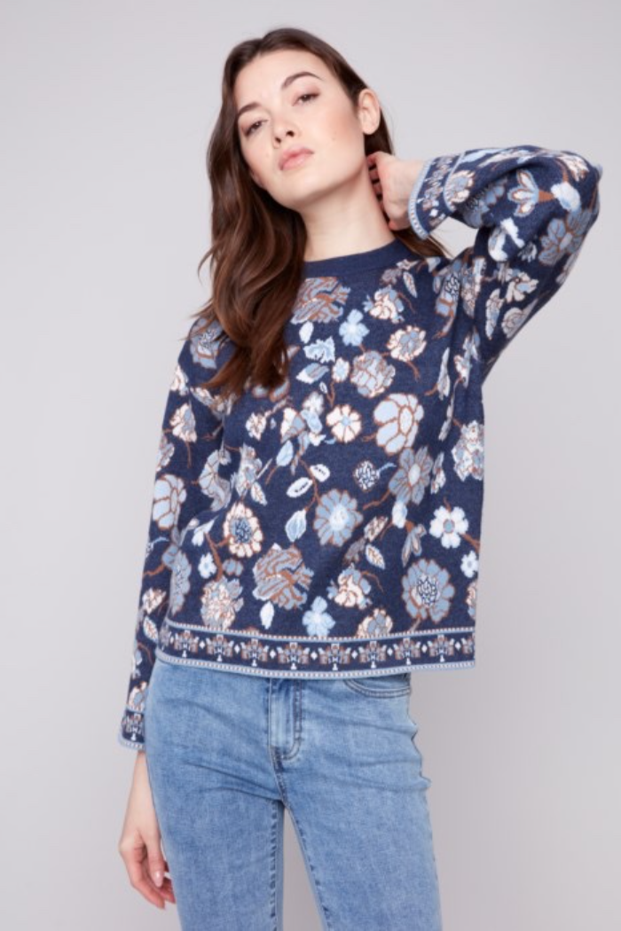 Unleash your chic side with our exquisite floral jacquard sweater, a masterpiece of rich textures and intricate designs. Perfect for pairing with your favorite jeans or an elegant skirt, this standout piece ensures you radiate style and comfort at any event. Elevate your fall wardrobe with this sophisticated addition and make every step a fashion statement.