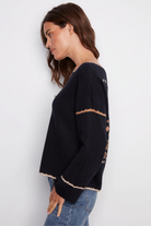 Notch Neck Embroidered Sweater