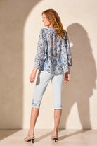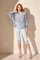 Float effortlessly from one place to another in our lightweight dolman sleeve blouse crafted from luxuriously woven fabric adorned in an elegant print. The notch neckline offers a touch of stylish breathability, while meticulously designed with fabric-covered buttons.