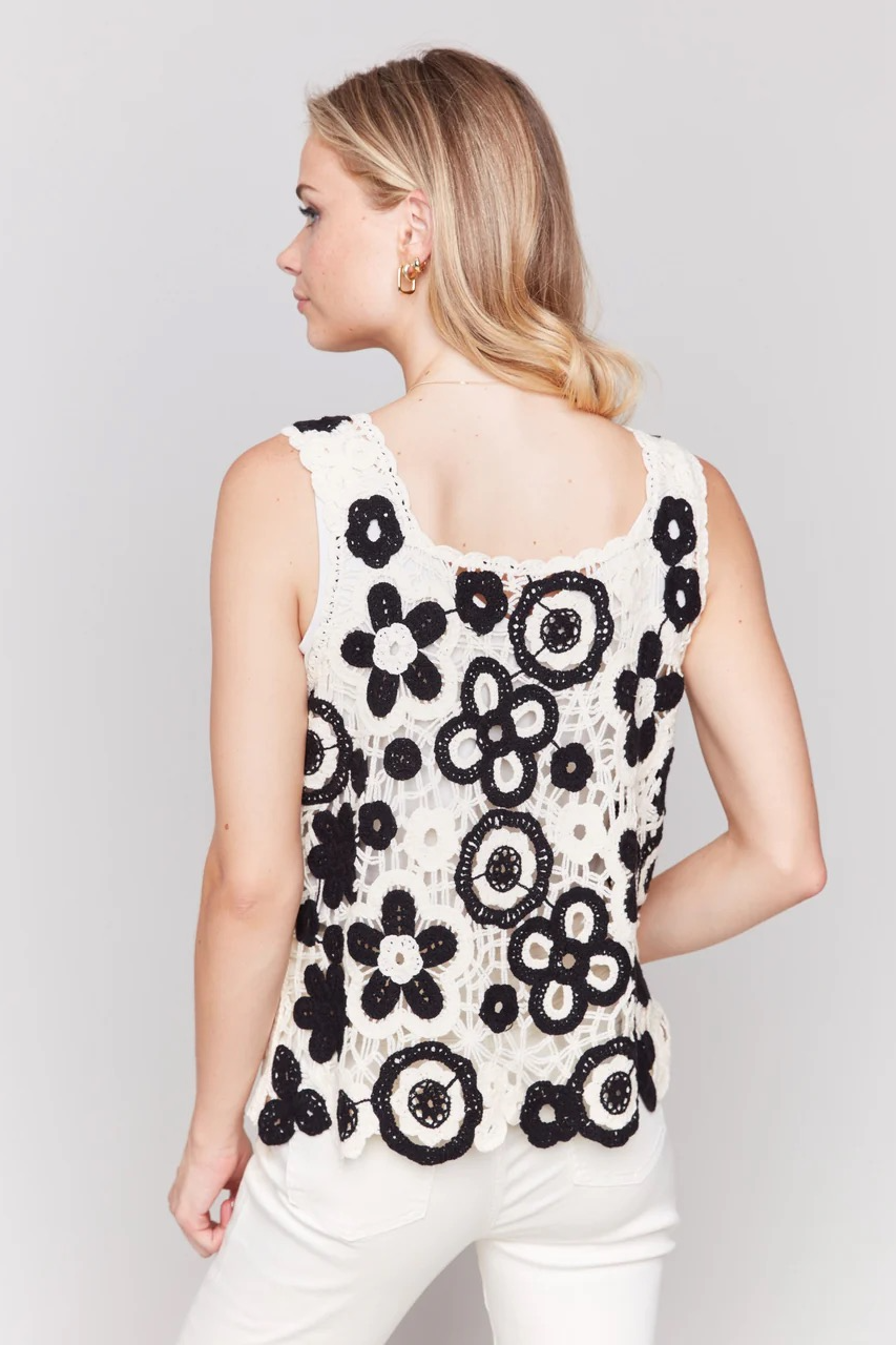 Upgrade your spring & summer wardrobe with a stunning sleeveless crochet top that showcases a beautiful black floral pattern. The crochet design suits both day and evening wear, bringing finesse to any outfit. Crafted from soft materials, its silhouette adds a delightful touch to your collection.