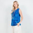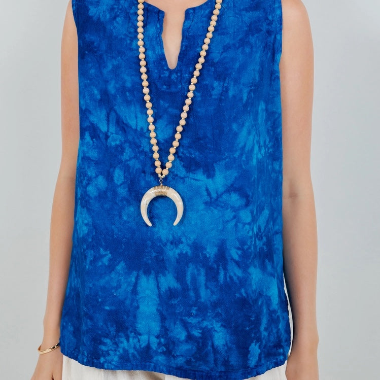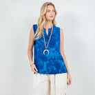 This short sleeve tank detailed with a Notch Neckline. Very flattering, can be dressed or down with a kimono.