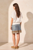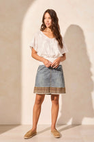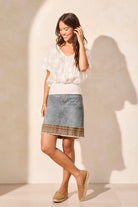 Achieve relaxed poise with this popover blouse, featuring draping short dolman sleeves and a flattering shirred waist that accentuates your figure. Decorative buttons along the front lend a polished touch to your look. Crafted from woven embroidered cotton, the fabric offers a beautifully textured and comfortably breathable feel.
