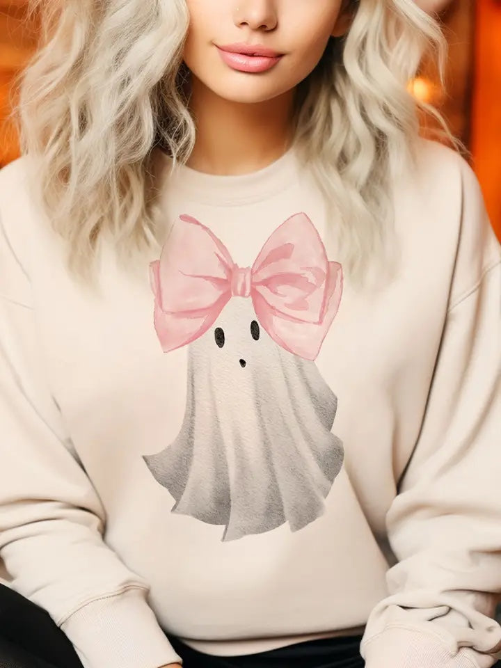 Have some Halloween Fun with this adorable glittery ghost with the cutest pink bow.