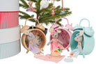 A whimsical play accessory modeled as a faux alarm clock for small-world and dollhouse play. The Faux Play Alarm Clock is a lightweight, pastel-toned prop that nests tiny fabric mice and picnic accessories for imaginative scenes. Designed for tactile pretend-play, the painted metal-like finish and floral interiors add vintage charm. This piece is crafted for playtime styling and is offered by LevLovs.