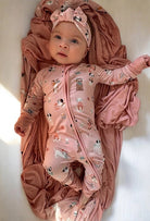 Puppy Egg Hunt Zip Footies is a zip-front, footed one-piece with an all-over puppy and egg print designed for sleep and nap time. The full-length zipper makes diaper changes quick and the fold-over mitts protect tiny hands. Made by Dreamlet, the snug one-piece silhouette and soft stretch fabric keep baby cozy for nighttime and daytime rest.