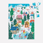 BRIGHT AND BOLD ARTWORK – This colorful mini puzzle features a colorful illustration of alpine life in the wintertime.
