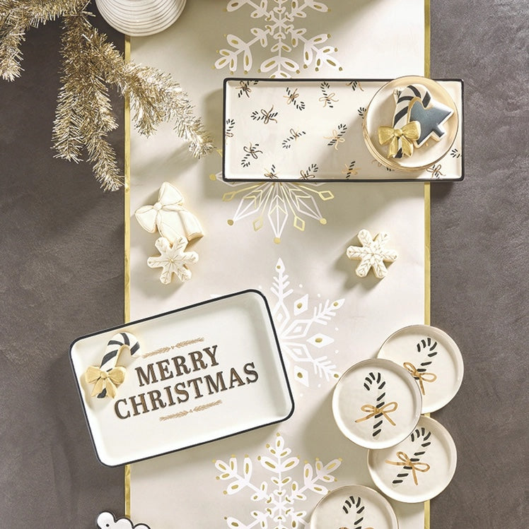 The stylish and attractive design of this ceramic tray makes it ideal for presenting appetizers, desserts, or beverages at your next holiday party.
