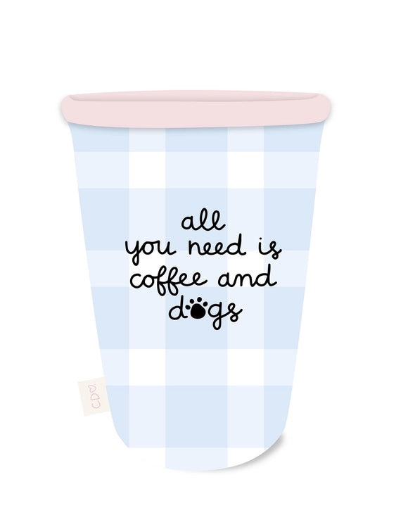 Keep your drinks cool and your hands warm with our Coffee & Dogs Coffee Sleeve! Featuring a fun blue gingham design and the hand-lettered phrase 'all you need is coffee and dogs,' this sleeve is perfect for any dog lover or pet parent. It's ideal for iced coffees, teas, and other beverages. Great as a gift for friends, family, or yourself, this coffee sleeve adds a touch of canine charm to your daily routine.