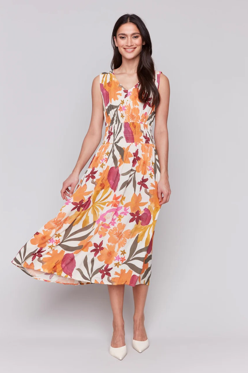 Feel the summer breeze in this Printed Bouquet Sleeveless Empire Waist Dress. With a V-neck and stylish ruching at the empire waist, it offers elegance and comfort, perfect for picnics or a relaxed stroll. Add this vibrant piece to your spring & summer wardrobe for an effortlessly chic look.