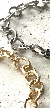 These chunky bracelets are so detailed and fun to wear. They have a vintage vibe. Detailed etched chain. Gorgeous oversized clasp. Sparkly clear crystal accent. Adjustable.