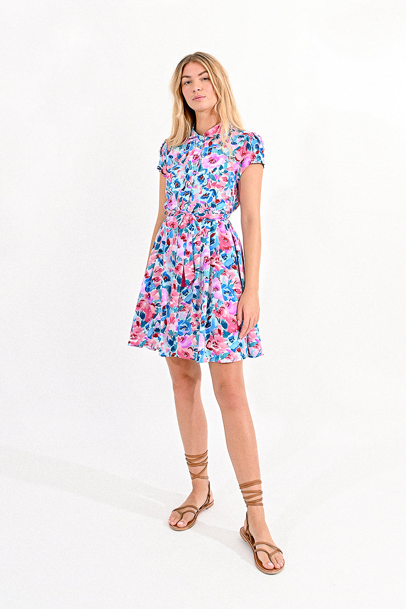 Summer crush, this flower print dress, stylish and feminine. It presents a trendy style in its blouse dress fit.