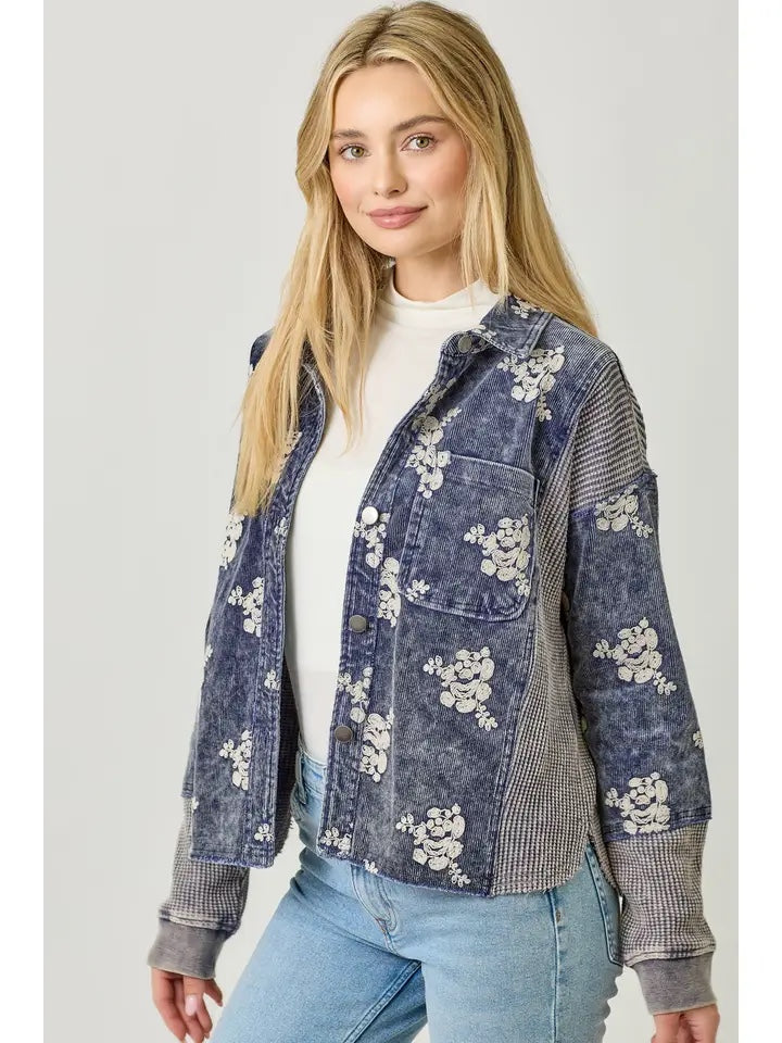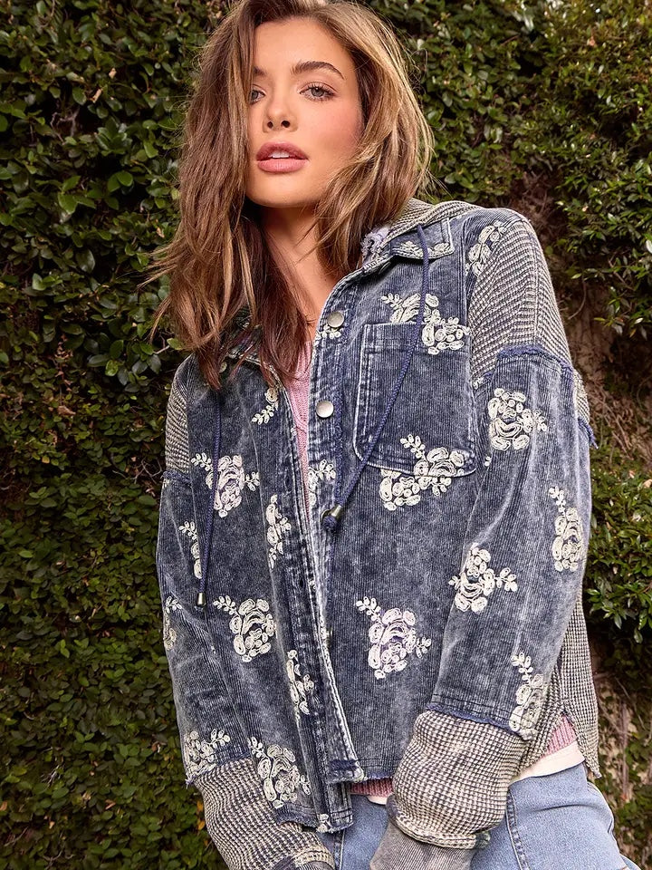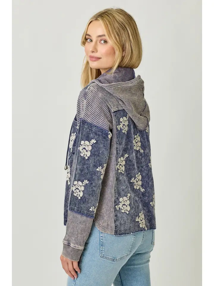 Flower Embroidery Hoodie Jacket