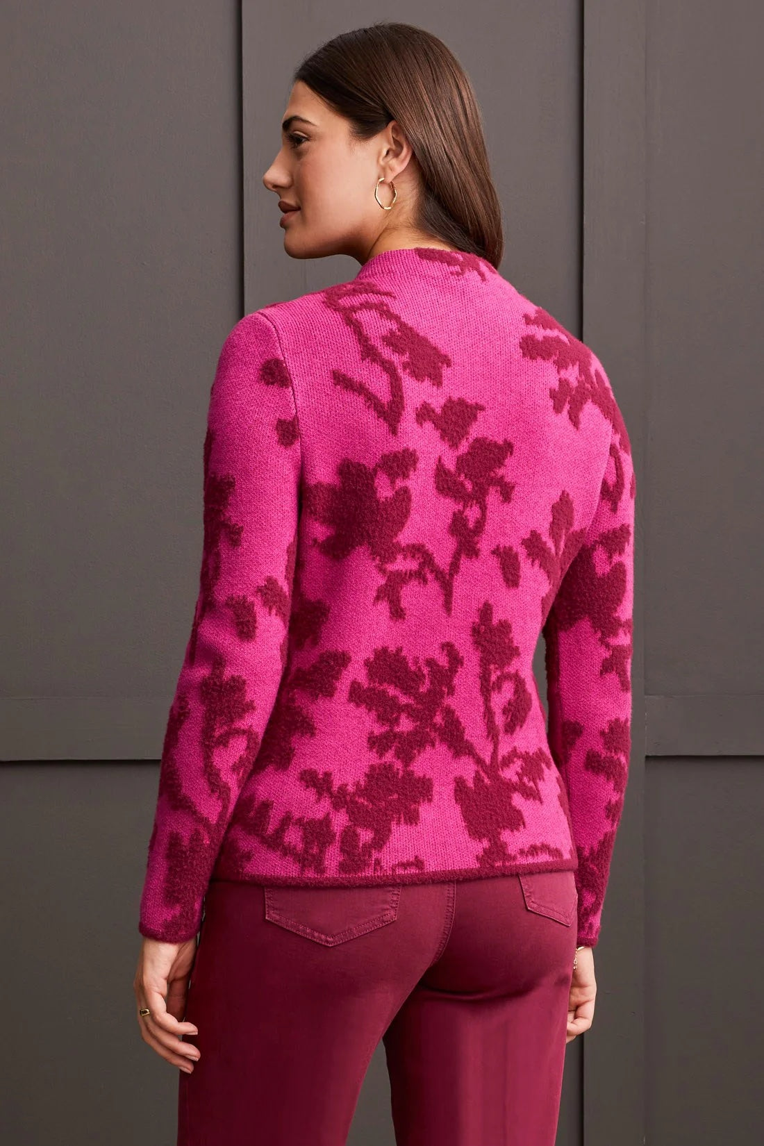 This mock neck sweater is tasteful and trendy rolled into one! We're adoring the long-sleeve design, close fit, and fuzzy double-knit yarn for a thicker and cozier feel. The variety of colorful intarsia patterns boost your everyday outfits with extra charisma.