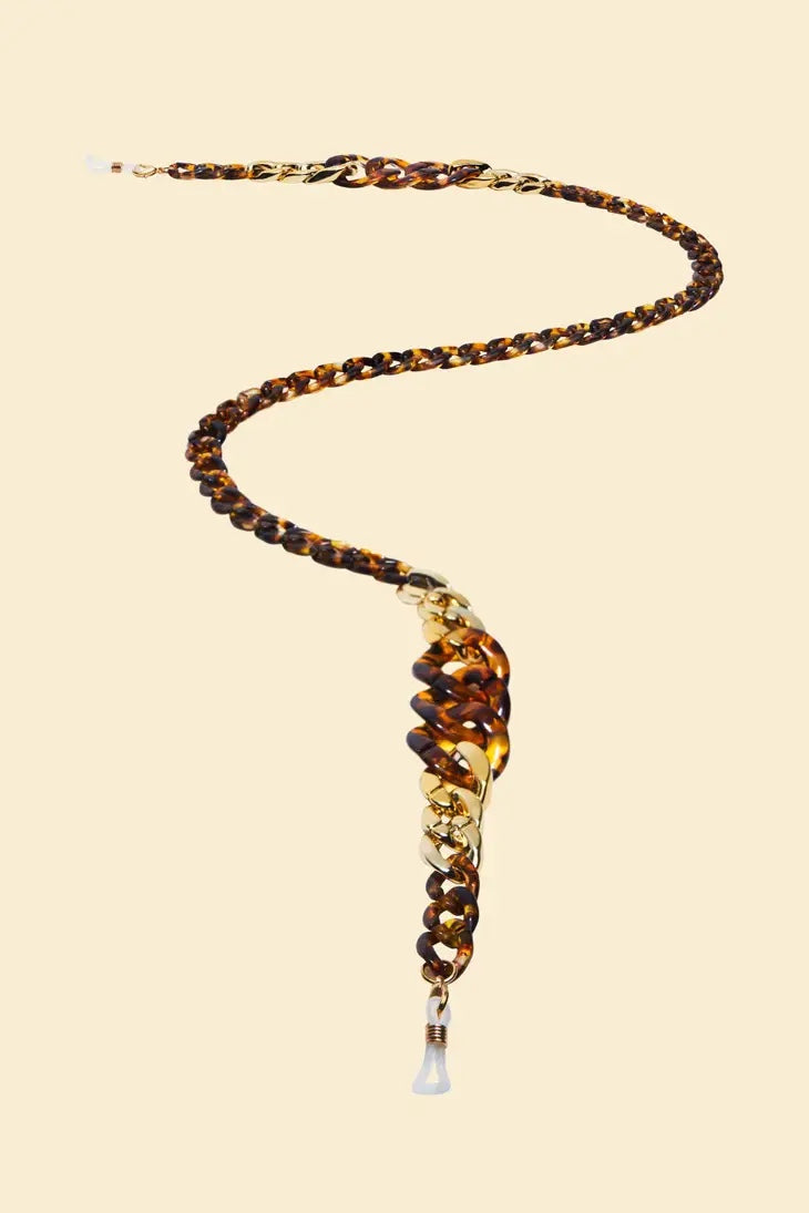 Calling all fashionistas! Introducing our brand-new accessory of the summer. This fabulous chain features a wave tortoiseshell colouring and functional rubber fastenings. Chic and practical - keep your glasses safe in style.
