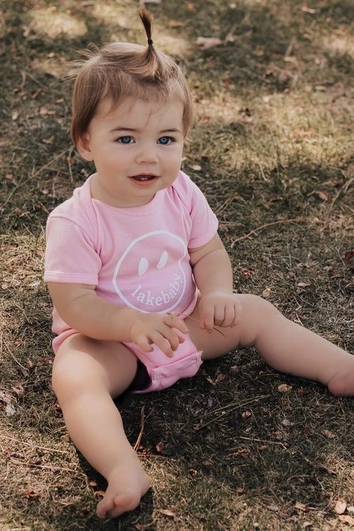 Lakebaby onesies are perfect for your little one. Features front lakebaby screen print design.