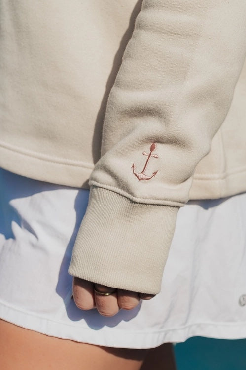 A sweatshirt so soft, you'll never want to take it off! A relaxed 1/4 zip sweatshirt with embroidered front and left sleeve design. Pair with our cloud fleece baltic short for a full set!
