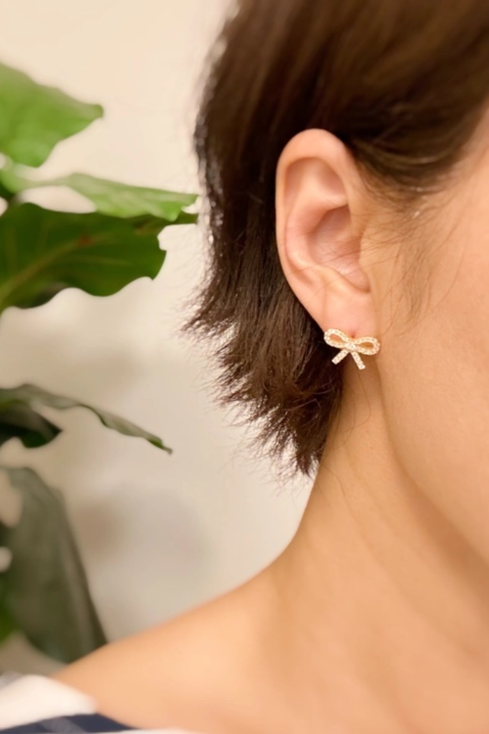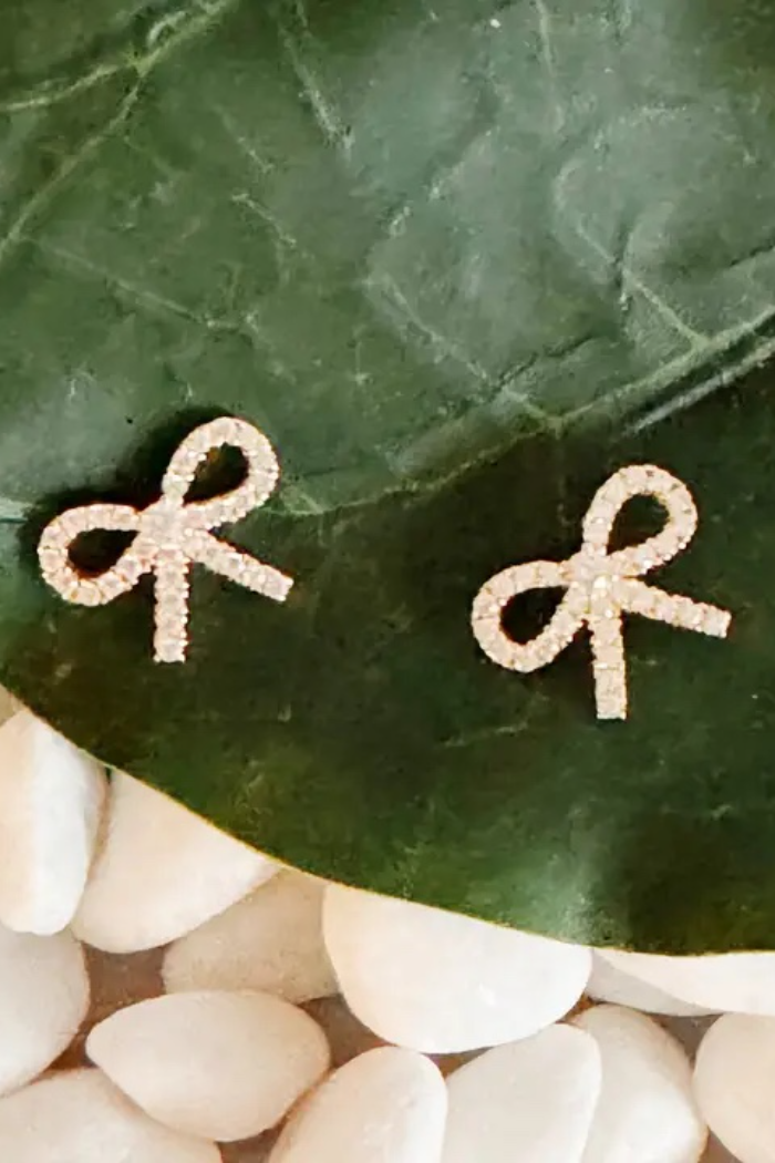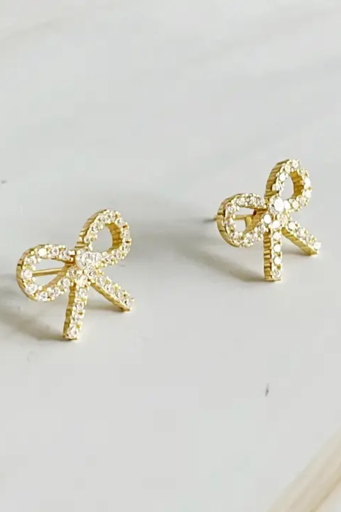 Crafted with sterling silver, the Shine Mini Bow Earrings add a touch of adorable shine and classic elegance to any outfit. Expertly designed, these earrings beautifully complement any style with their timeless appeal. Elevate your look with these must-have earrings.