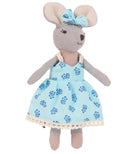 With petals in her dress and daydreams in her heart, Mouse Jasmina floats through the world like a soft spring breeze. She wears a lovely light blue dress, the color of the open sky, adorned with the tiniest flower print—like a secret garden stitched into fabric. Her sweet little bow rests gently on her head, ready for play, picnics, and peaceful naps under imaginary trees.