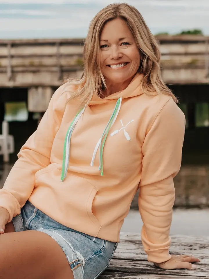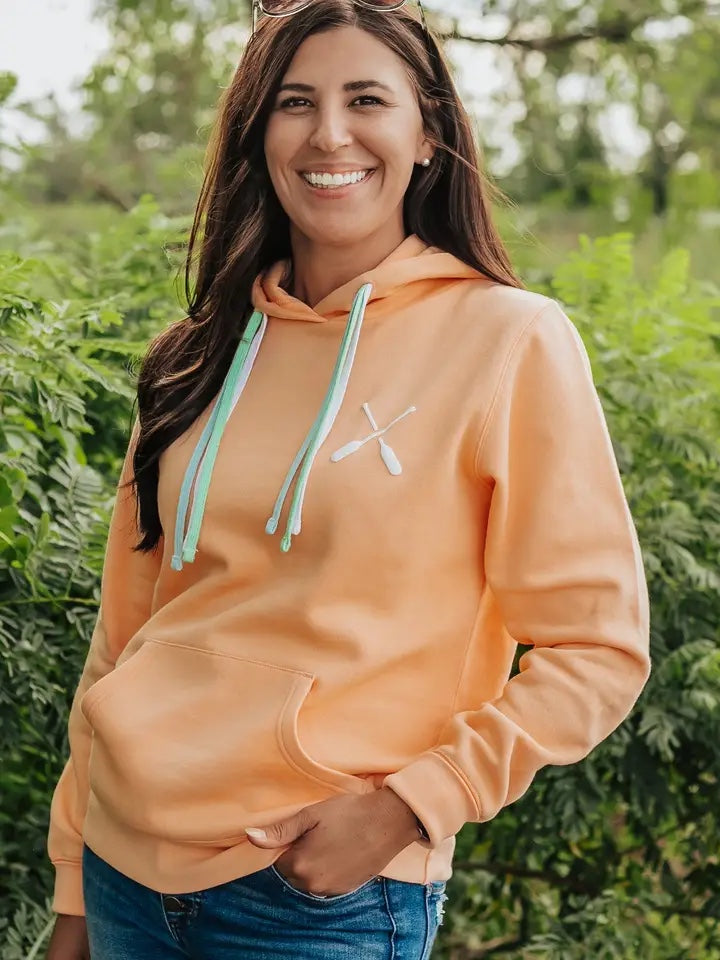 This new sweatshirt features multi-colored drawstrings with a puff ink design on the left chest and back.