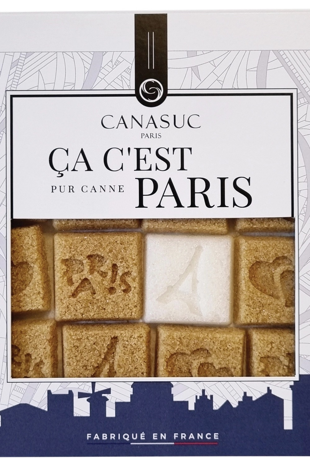 These Paris Sugar Charms are decorative sugar cubes shaped and embossed with Parisian motifs for adding a whimsical touch to tea or coffee service. The French Farm presents the candies in a gift-ready box that highlights the Eiffel Tower and classic Paris styling. Each cube is crafted from refined sugar with a mix of white and brown pieces to create visual contrast on the tabletop. Tuck this box into a hostess gift or keep it on your own beverage cart for charming entertaining moments.