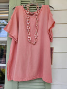 Phyllis is a one size fits most top with a cold shoulder detail and V neckline.