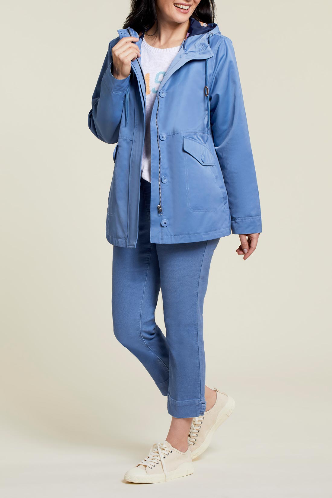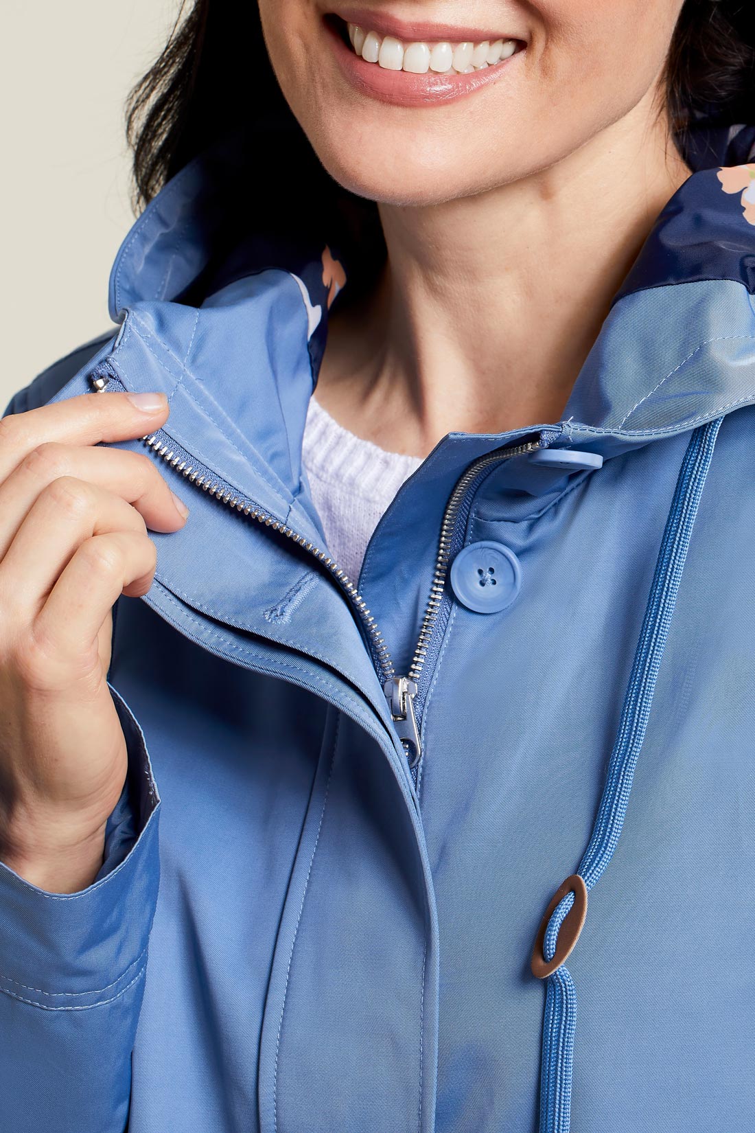 Staying warm doesn't have to mean sacrificing your stylish side, and this water-repellent jacket offers all the proof we need. We love the adjustable drawstring hood, zip-up front with a button placket, two-way pockets, and printed lining that gives this classic look a pop of personality.