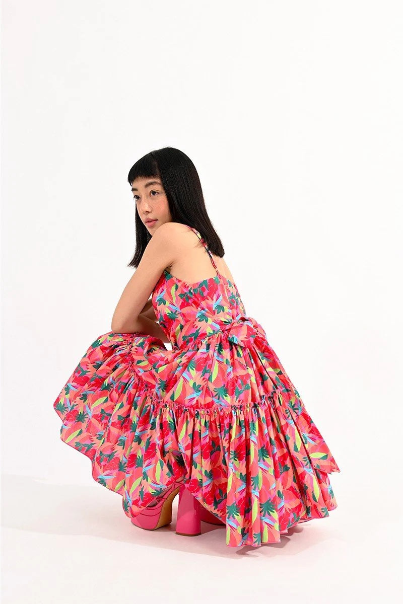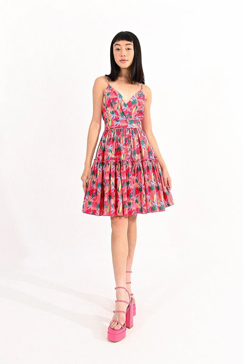 A lively floral pattern lends a charming and dramatic touch to this lovely V-neck dress from Lili Sidonio. Pair it with wedges for the perfect warm-weather look.