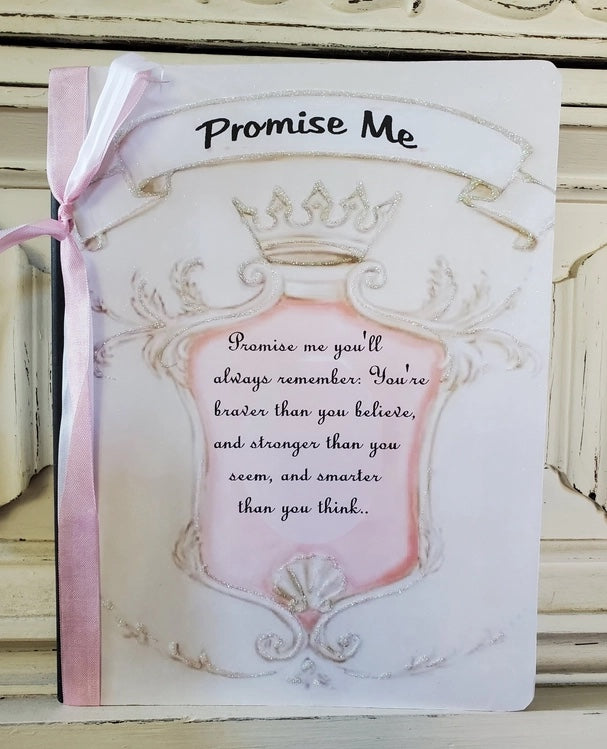 This lovely composition journal book has the sweetest Whinnie the Pooh Promise Me quote. Front and back are the same image with just the right amount of fairy dust and glitter makes a lovely gift. 100 Sheets and it's wide ruled.